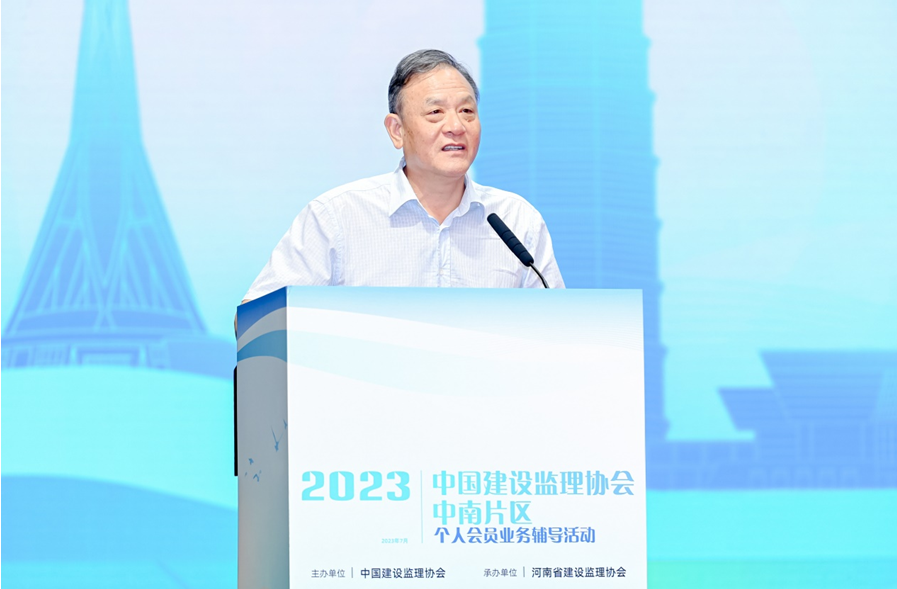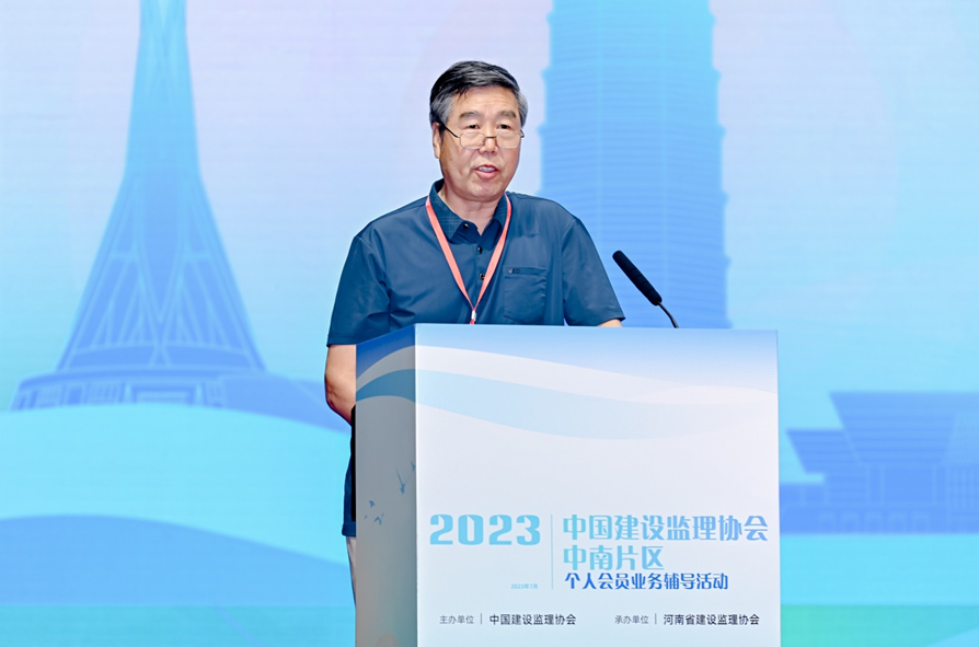 河南省建设监理协会孙惠民会长致辞。他介绍了河南建设监理行业的整体情况,并期待通过本次辅导活动,中南地区监理从业人员和行业协会能够进一步增进了解、加深友谊、深化合作,共同应对挑战,为建设监理行业的改革发展,为构建开放包容的中南地区建设监理行业发展格局做出更大的贡献。
